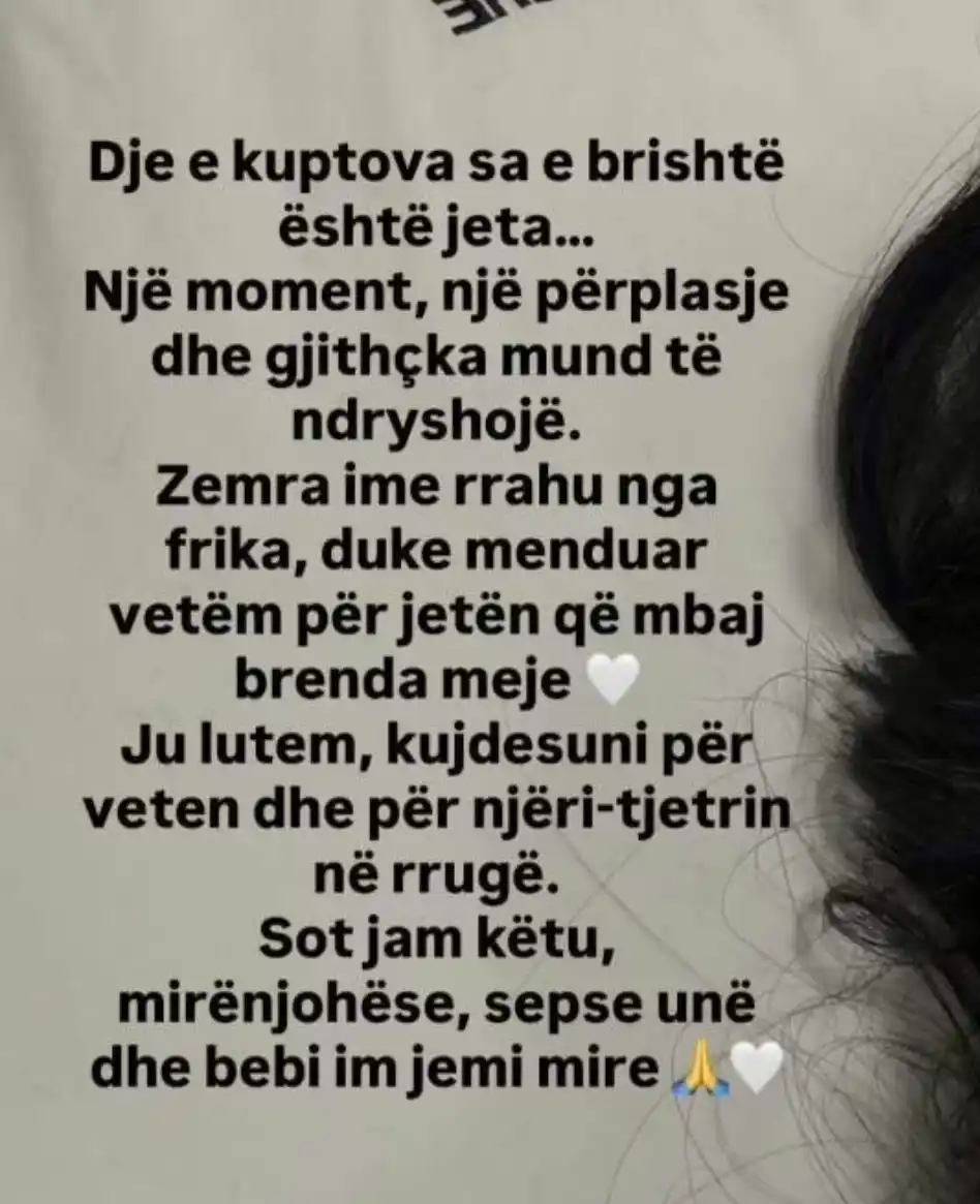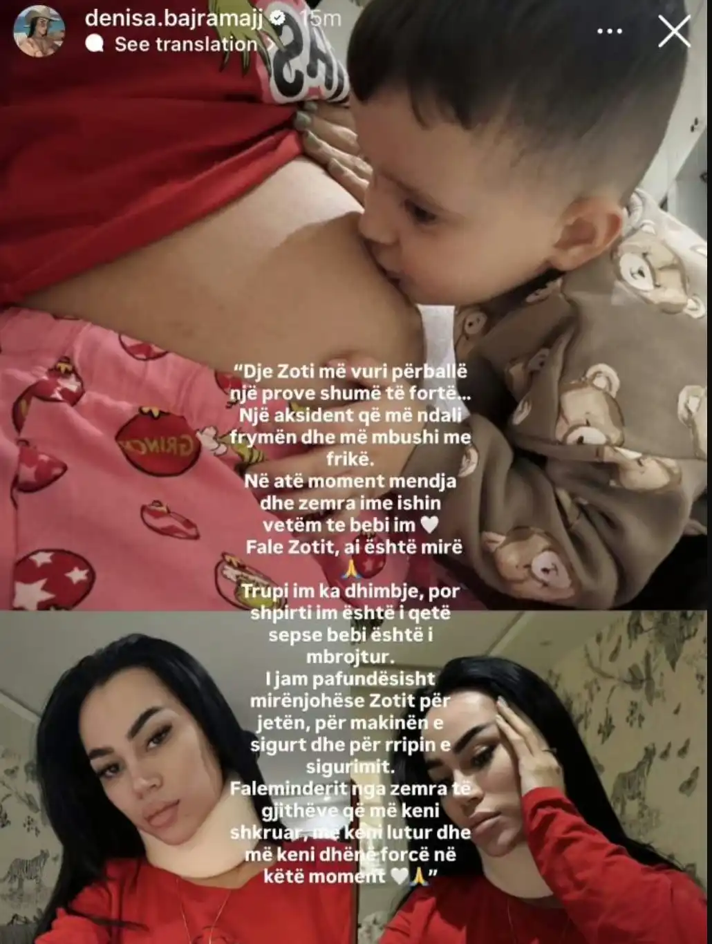 Denisa e përshkroi aksidentin si një “provë shumë të fortë” nga Zoti, duke rrëfyer se në ato momente frika e saj e vetme ishte për jetën e foshnjës që pret të sjellë në jetë.