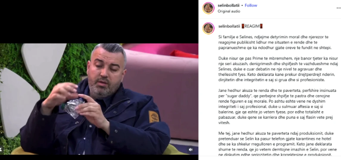 Lidhur me akuzat e rënda që ka bërë Rogerti ndaj Selin, ka reaguar familja e balerinës. Sipas tyre, këto deklarata të banorit kanë prekur drejtpërdrejt nderin, dinjitetin dhe integritetin e saj si grua dhe profesioniste.