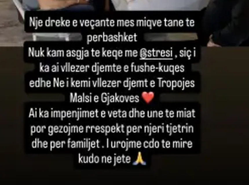 Kjo lihet të kuptohet nga një postim i Jozit në instastory, ku ai ka qënë duke drekuar me Sali Lushajn, babain e Stresit, gjë e cila ka nxitur aludime për paqe mes këngëtarit dhe reperit.