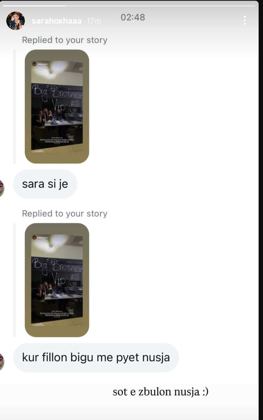 Sara nuk ka ngurruar të përgjigjet, duke zbuluar se dita e madhe e njoftimit është pikërisht sot. “Sot e zbulon nusja :)”, ka shkruar ajo, duke lënë të kuptohet se brenda ditës së sotme do të publikohet data zyrtare e startimit të spektaklit.