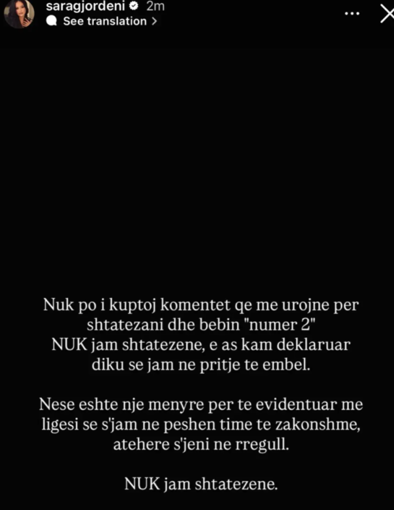 Në fund të reagimit të saj, Sara e mbyll sqarimin me të njëjtin mesazh të prerë: “NUK jam shtatzënë,” duke kërkuar indirekt që komentet dhe insinuatat të ndalojnë njëherë e mirë.