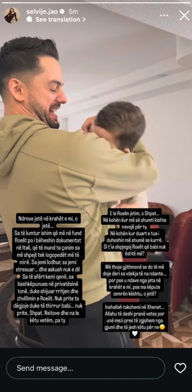 Krahas imazhit, Selvije Jao ka edituar edhe mbishkrimin në postim, ku i dedikon një mesazh prekës të birit: “P.s. 05.12.2025 Babi do jetë ëngjëlli jonë mbrojtës deri sa Xheneti të na bashkojë inshallah🤲😭”.