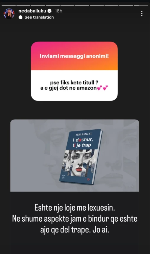 Neda vazhdon të jetë aktive në rrjetet sociale, ku mbrëmjen e djeshme, një ndjekës e pyeti në InstaStory se pse zgjodhi pikërisht këtë titull provokues për librin e saj.