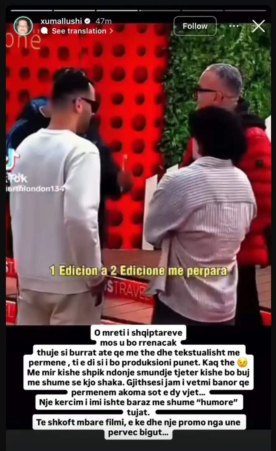 Përmes një postimi në Instastory, Xumi ka hedhur akuza të forta, madje duke prekur edhe tema delikate nga e kaluara e Luizit në BBV2.